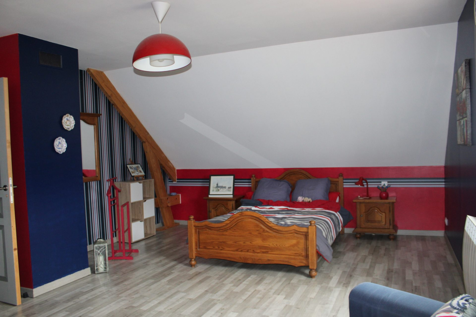 A l'étage des beaux volumes également avec un palier, un cabinet de toilette et deux grandes chambres de 20m² chacune.